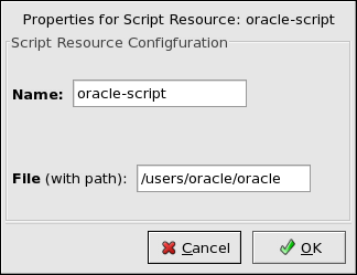 The Oracle service example uses three scripts that must be placed in /users/oracle and owned by the Oracle administration account. The oracle script is used to start and stop the Oracle service. You must specify this as a Script resource when you configure the service using the Cluster Configuration Tool. This script calls the other Oracle example scripts. The startdb and stopdb scripts start and stop the database. Note that there are many ways for an application to interact with an Oracle database.