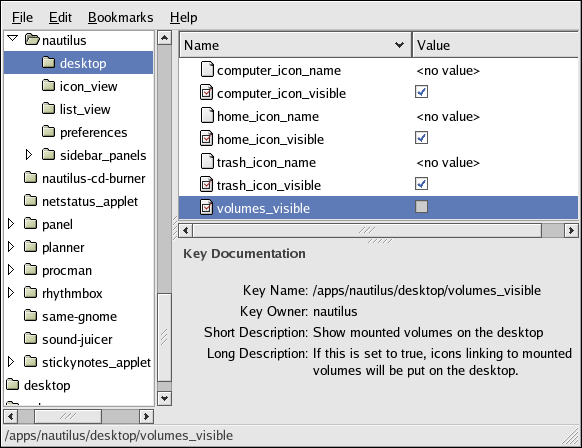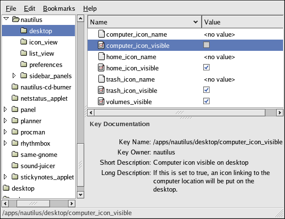 To remove one or more of the default icons from the desktop, unset the appropriate key